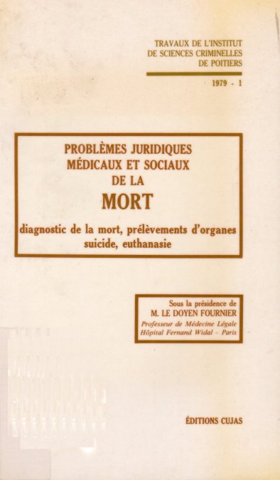 Travaux de l’Institut de Sciences criminelles, vol. I, 1979, éditions Cujas